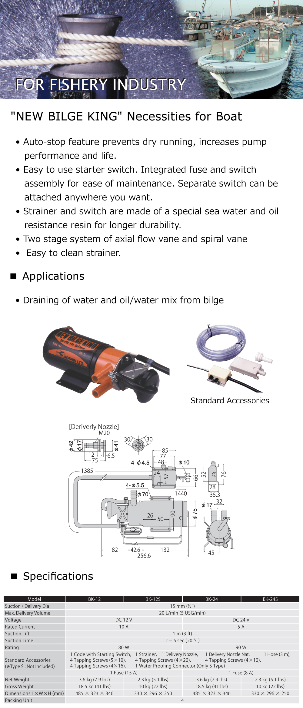 Marine Bilge Pump Bk Bk S Series Bk 12 Koshin Ltd