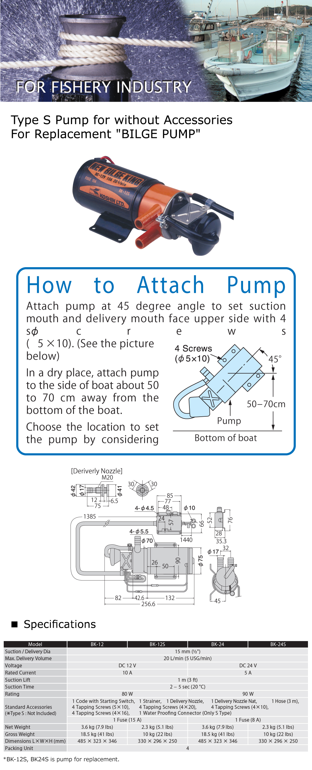 Marine Bilge Pump Bk Bk S Series Bk 12s Koshin Ltd