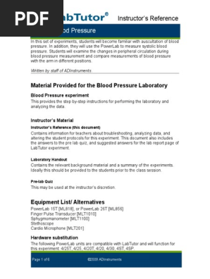 Blood Pressure Instructors Reference Diastole Blood Pressure