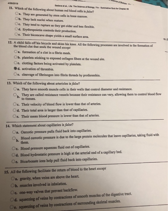 Solved 426 2019 Sadava Et Al Lfe The Science Of Biology