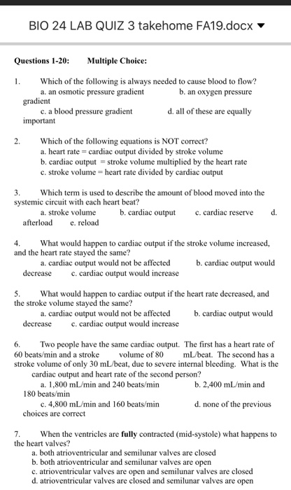 Solved Bio 24 Lab Quiz 3 Takehome Fa19 Docx Questions 1 2