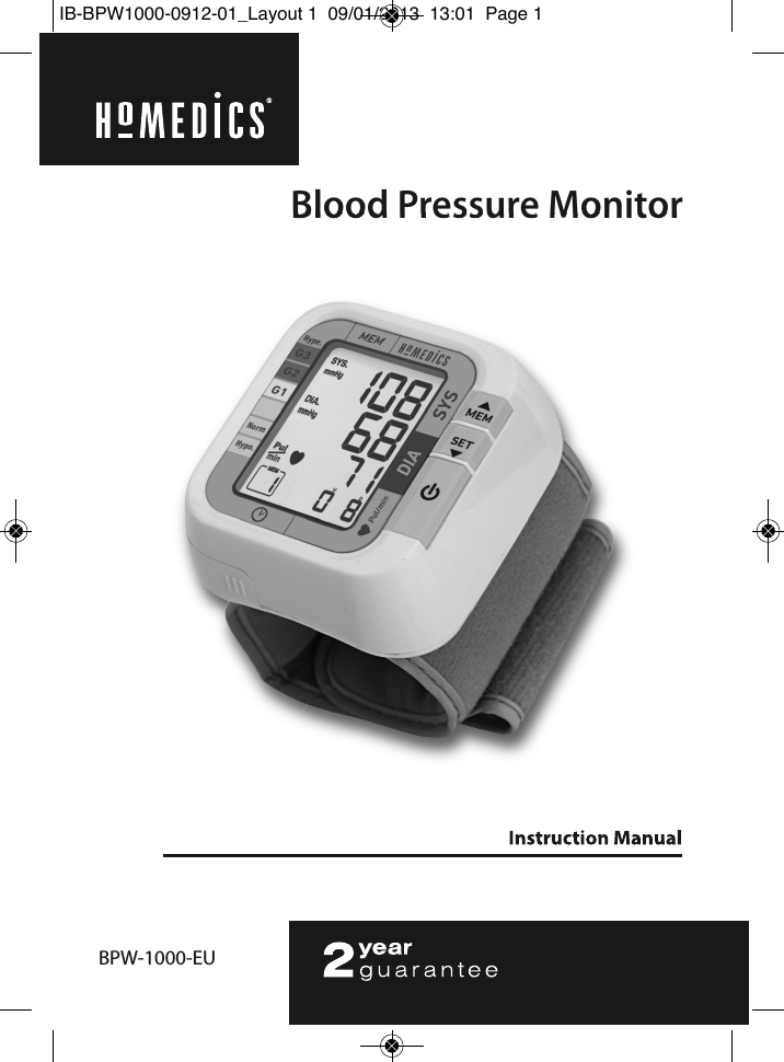 Homedics Bpw 1000 Eu Blood Pressure Unit Manualzz