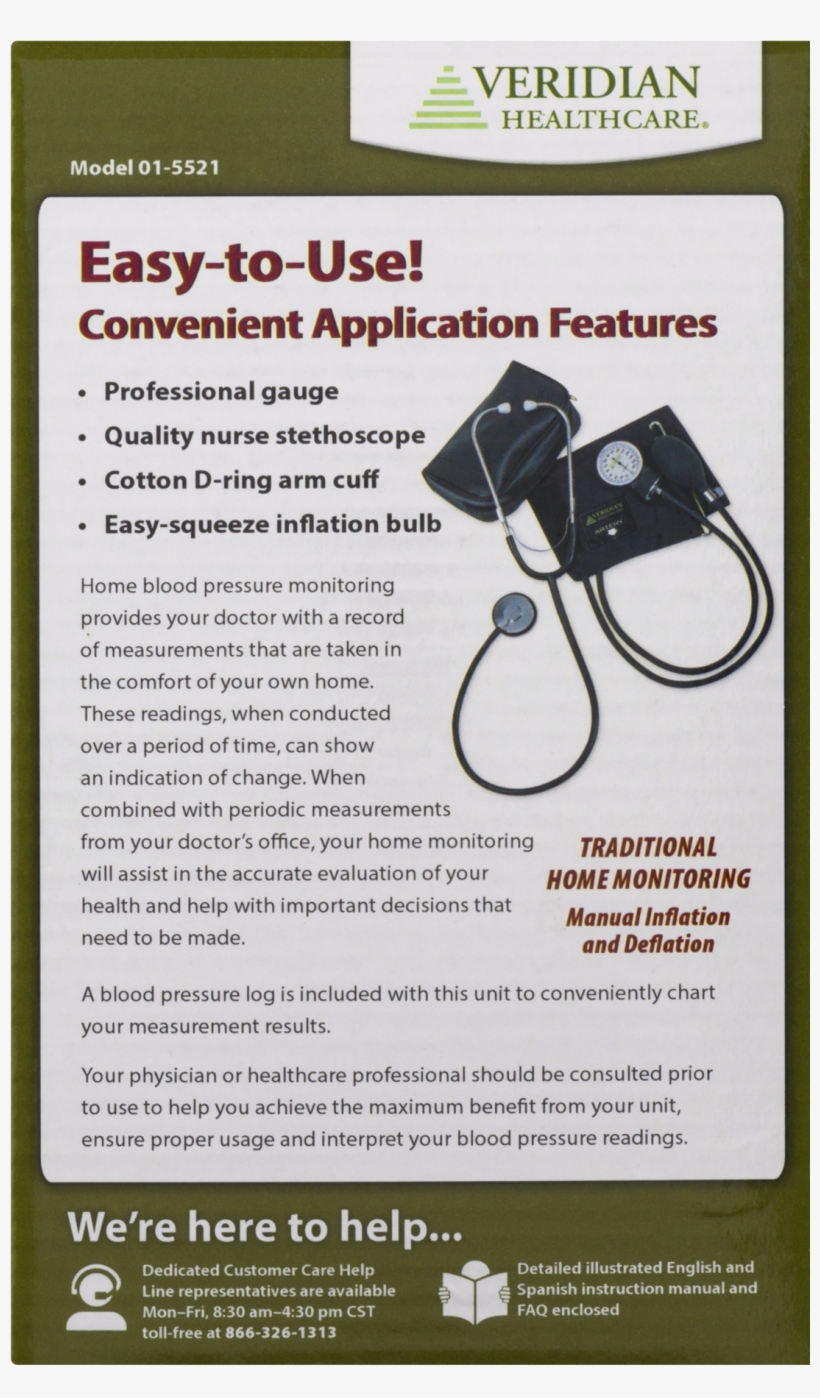 Veridian Health Manual Blood Pressure Monitor With Usb Cable