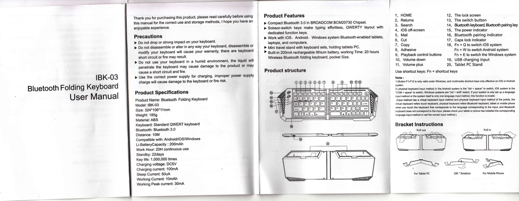 Kb001 Bluetooth Keyboard User Manual Ipio Technologies