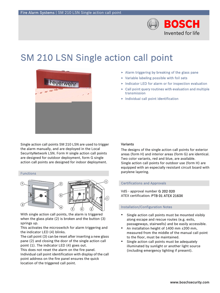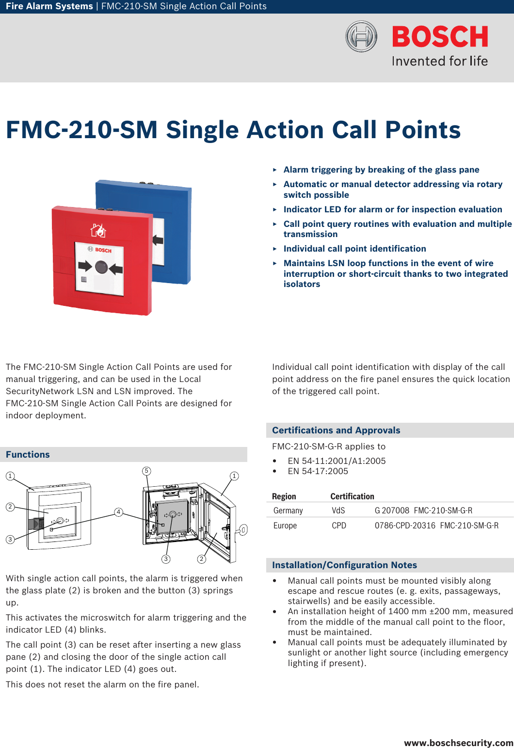 Boschhome Bosch Appliances Smoke Alarm Fmc210sm Users Manual Fmc 210 Sm Single Action Call Points